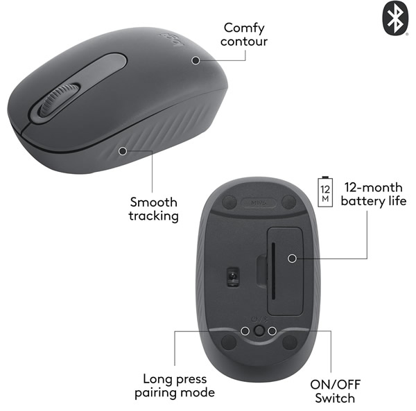 Práctico mouse portátil para computadoras portátiles y tabletas: el mouse inalámbrico Bluetooth Logitech M196 se conecta en segundos con una conexión Bluetooth fiable de emparejar y jugar, no requiere dongle ni puerto