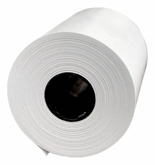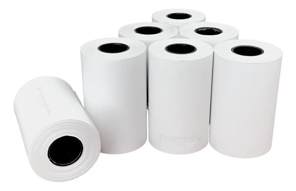 Rollos de papel térmico en blanco con impresión personalizada en reverso 57mm ancho 35mm diámetro 13mm buje 80gr - Caja de 100 Unidades