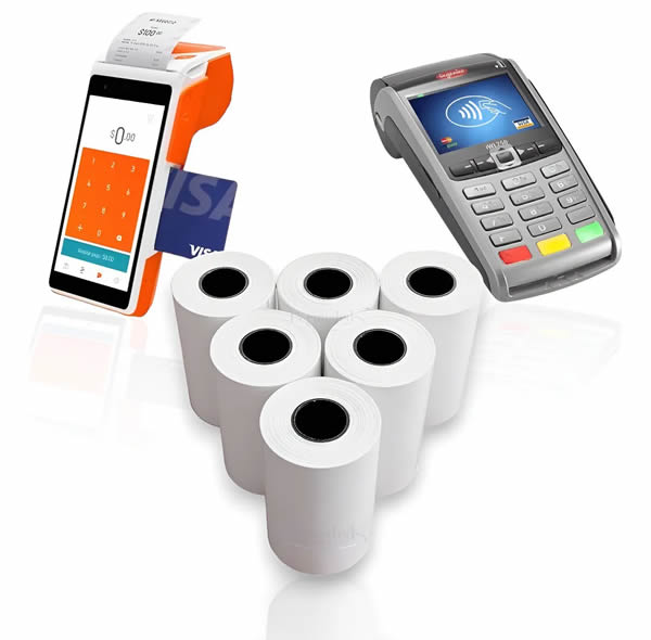 Rollos de papel térmico en blanco 57x35x13 80gr - Caja de 100 Unid. con impresión personalizada